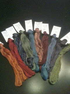 Look at these lovely thread I ordered from Nancy. The ladies at the Pals retreat we sat next to really seemed to love them. I ask her to send me 10 and I love all of the colors she pulled for me. Can't wait to work them into a chart or two. I have a small SB fob I am trying to finish this week and then maybe I can pull a chart that will work with these yummy colors.