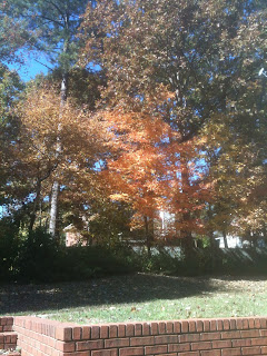 This photo does not do the amazing fall colors now showing off on my back deck justice. I am sure I will blink and they will be in dire need of raking, but for now they are just lovely. I looked and there was yellow, red and orange all showing. Couple that with the crisp air and oh so pleasant temperature and you have a very nice fall season. There was just a slight amount of wind today when I walked for lunch. Such a welcome change from the thick, hot, humid air of late August and September which respiratory distress syndrome when you exit the air conditioned comfort of home. Just walking outside leaves you with a total body sweat wave.