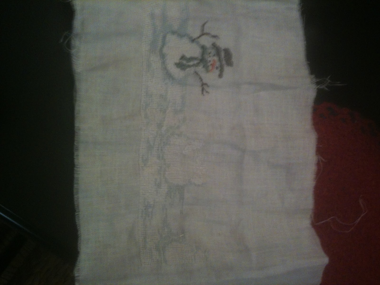 It is really hard to see them on the spun silver linen but there are 3 so far with 4 to come soon. That is actually an entire skein of white floss. It may take 2 before the fat snow-woman sings.I'm sure it will show better once I fill in some color on them but right now it a fair amount of bland.